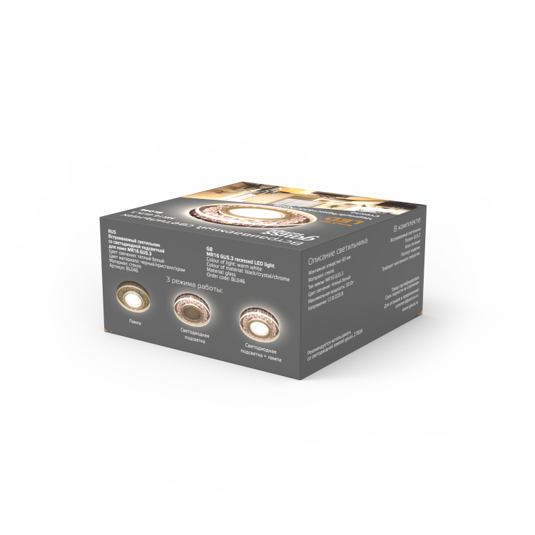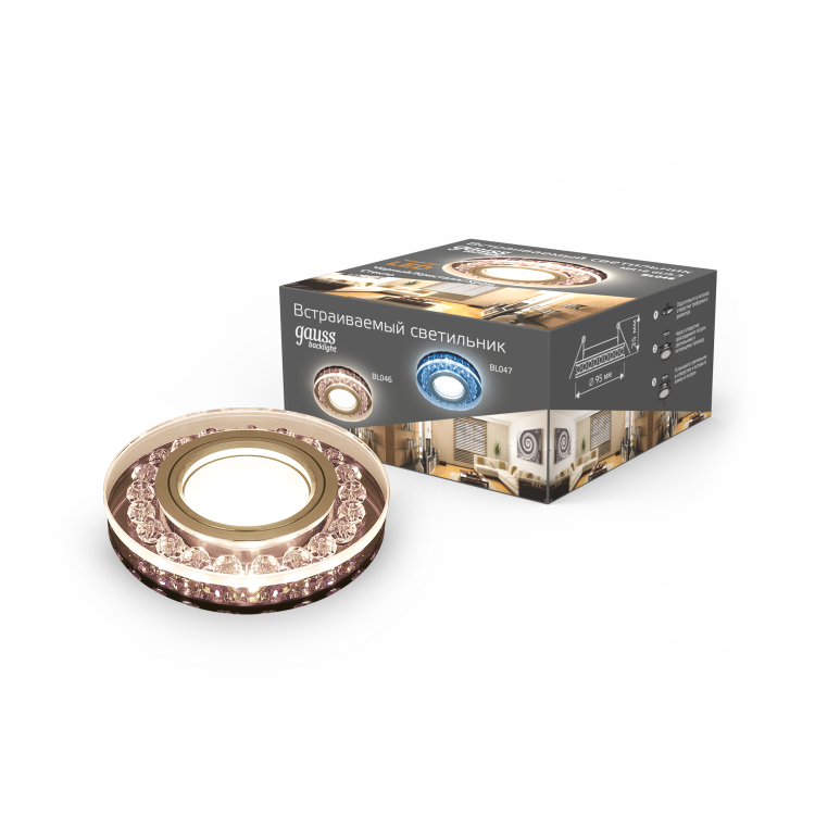 Светильник Gauss Backlight BL046 Кругл. Черный/Кристалл/Хром, Gu5.3, LED 2700K 1/40 (кр.1шт)