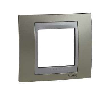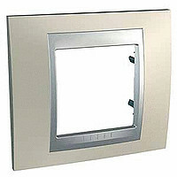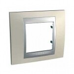 Рамка Schneider Electric UNICA TOP (опал) одинарная с алюминиевой декоративной вставкой.