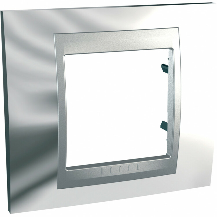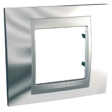 Рамка Schneider Electric UNICA TOP (хром глянцевый) одинарная с алюминиевой декоративной вставкой.