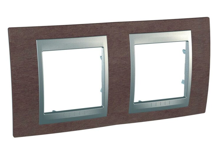 Рамка Schneider Electric UNICA TOP (табачное дерево) двухместная с алюминиевой декоративной вставкой.