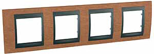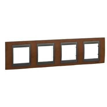 Рамка Schneider Electric UNICA TOP (вишня) четырёхместная с графитовой декоративной вставкой.