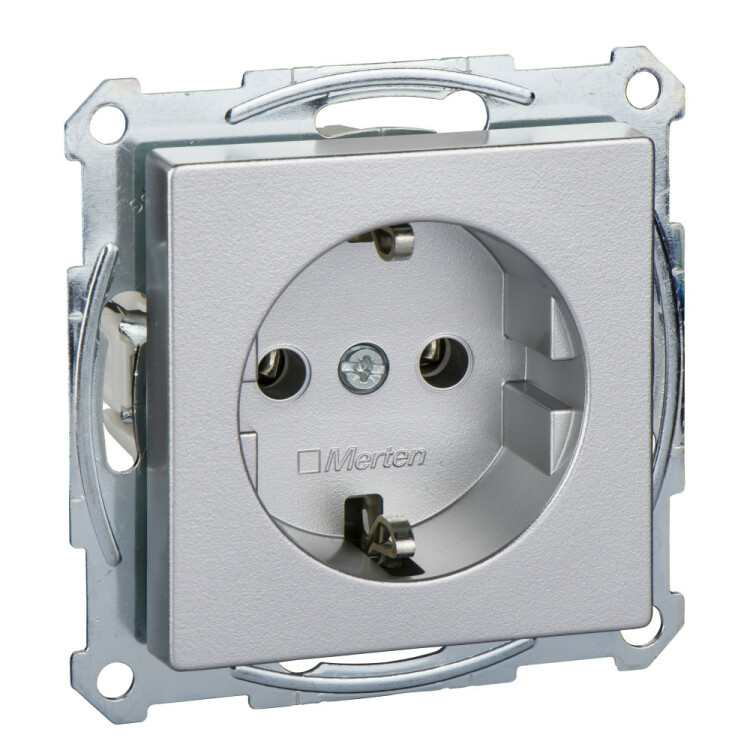 Механизм розетки С/З Б/Ш алюминий. наименование: M-Arc, M-Elegance, M-Plan, M-Smart, M-Plan glass, M-Star, System M - тип устройства или его аксессуаров: розетка - стандарт розетки: немецкий. Преимущества: Безграничные возможности Merten System M. Основой изделий являются высококачественные механизмы скрытого монтажа. Они отличаются высокой гибкостью использования и разнообразием выполняемых функций: это электрические розетки, клавишные и кнопочные выключатели, устройства управления рольставнями и регуляторы температуры, а также телефонные, ТВ/аудио и компьютерные розетки, датчики движения и присутствия, термостаты, светорегуляторы и реле времени, компоненты радиосистемы и системы автоматизации KNX. Merten System M удовлетворяет всем требованиям и успешно решает любые задачи.... применения: Изделия Merten System M подходят для жилых и нежилых помещений. Их устанавливают в школах, офисах, больницах или отелях., Инновационные функции для классических электрических установок, Выполнение функций интеллектуального интерфейса для работы с KNX, Обеспечение комфорта, безопасности и эффективности использования электроэнергии, Возможность простой и гибкой модернизации с System M и системой RF..