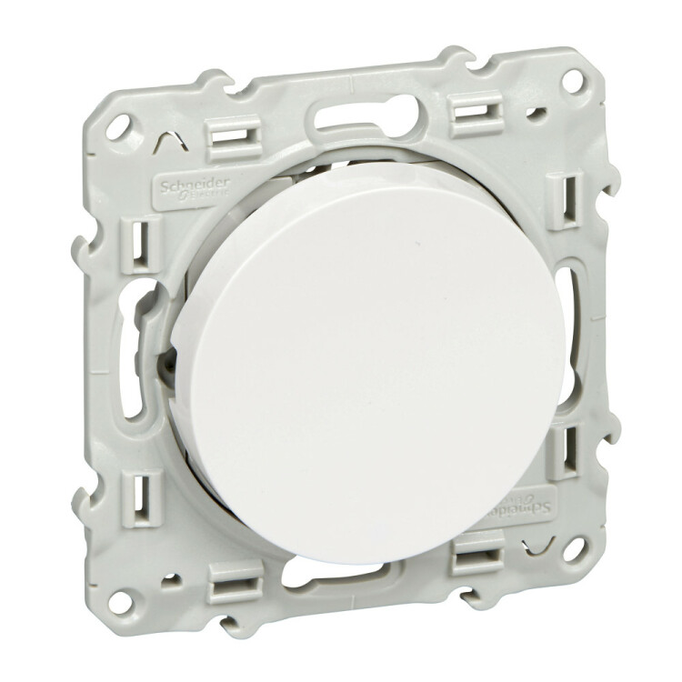 Выключатель одноклавишный Schneider Electric ODACE (цвет белый) с безвинтовыми зажимами предназначен для сетей до 250 В на ток до 10 А.
