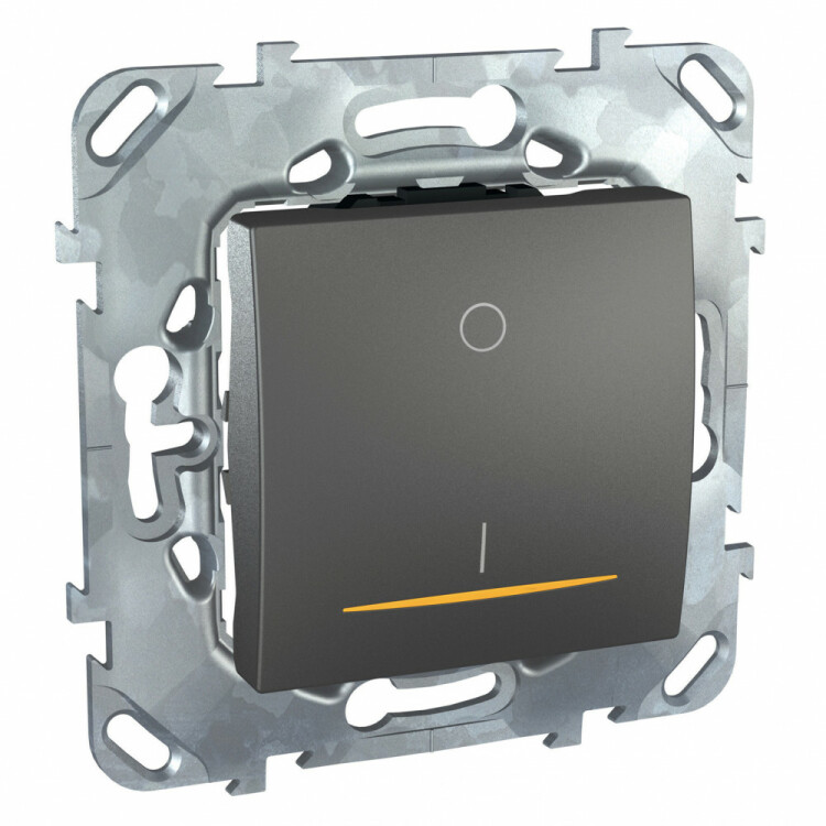 Выключатель одноклавишный Schneider Electric UNICA ТОР (графит) двухполюсный с индикацией, с винтовыми клеммами предназначен для сетей до 250 В на ток до 16 А.
