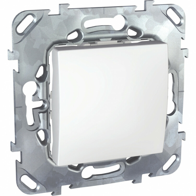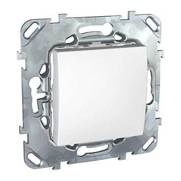 Переключатель одноклавишный Schneider Electric UNICA (белый) перекрёстный без подсветки предназначен для сетей до 250 В на ток до 10 А.