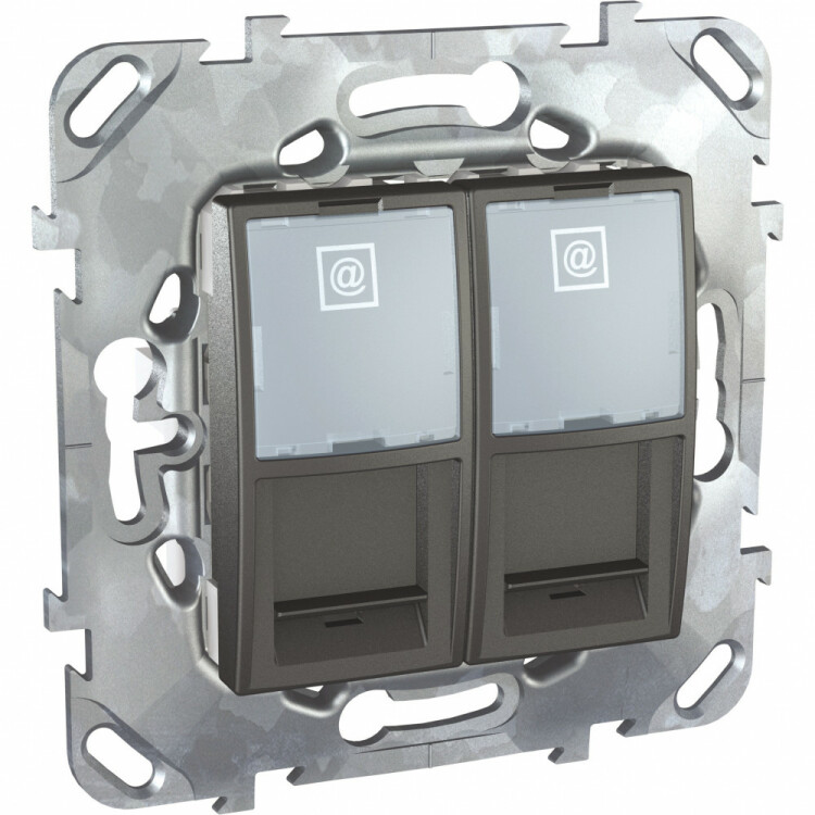 Розетка RJ45 категория 6 Schneider Electric UNICA ТОР (графит) двойная компьютерная с полем для надписи.