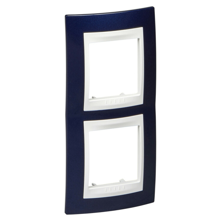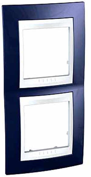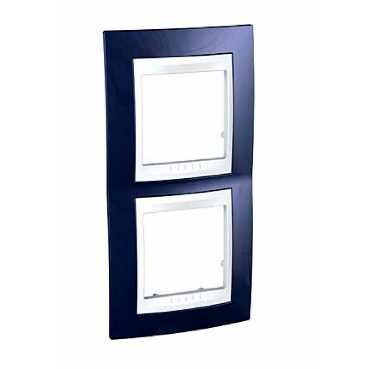 Рамка Schneider Electric UNICA ХАМЕЛЕОН (индиго) двухместная с белой декоративной вставкой.