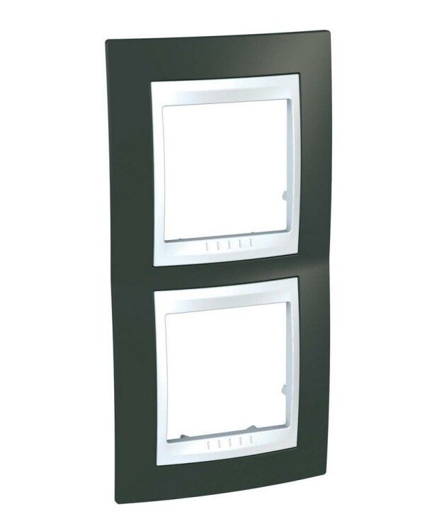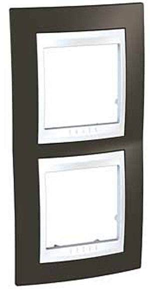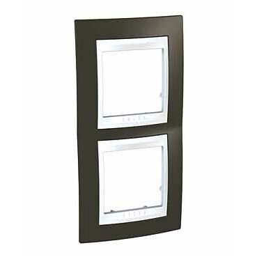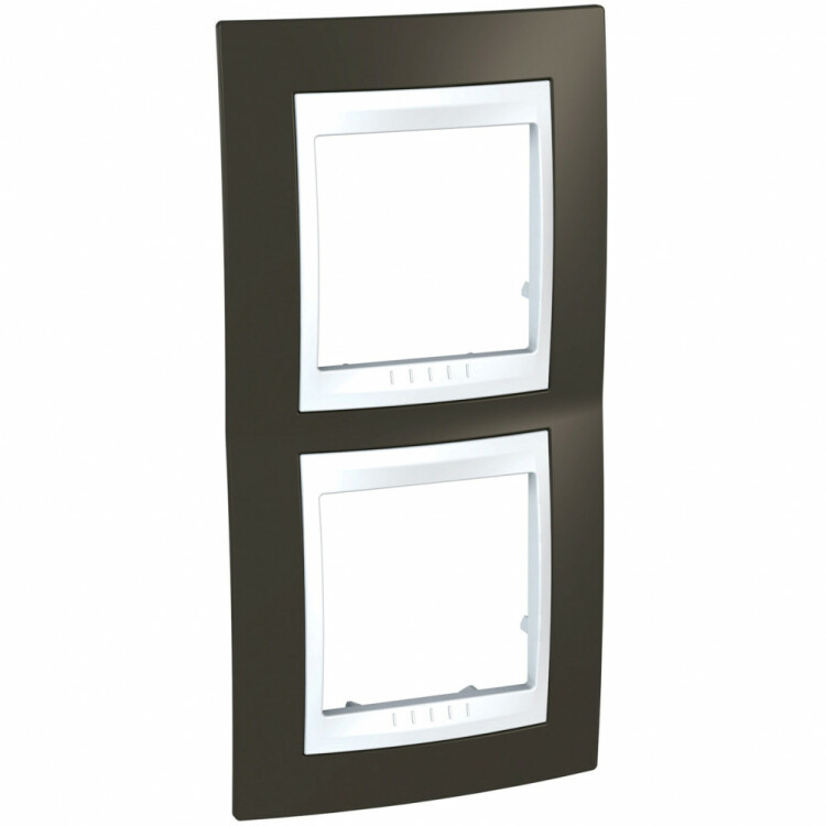 Рамка Schneider Electric UNICA ХАМЕЛЕОН (какао) двухместная с белой декоративной вставкой.