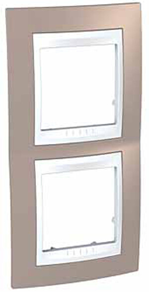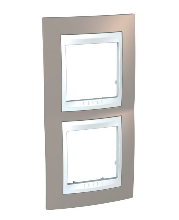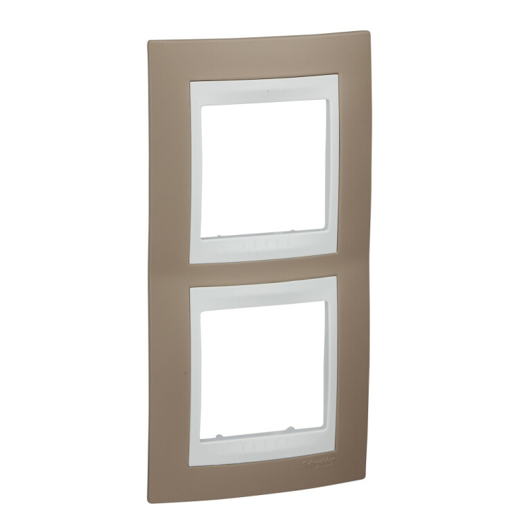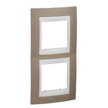 Рамка Schneider Electric UNICA ХАМЕЛЕОН (коричневый) двухместная с белой декоративной вставкой.