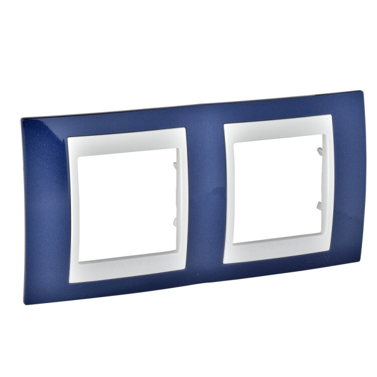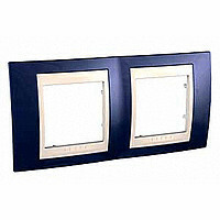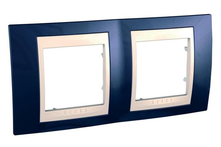 Рамка Schneider Electric UNICA ХАМЕЛЕОН (индиго) двухместная с бежевой декоративной вставкой.