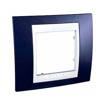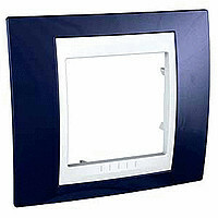 Рамка Schneider Electric UNICA ХАМЕЛЕОН (индиго) одинарная с белой декоративной вставкой.