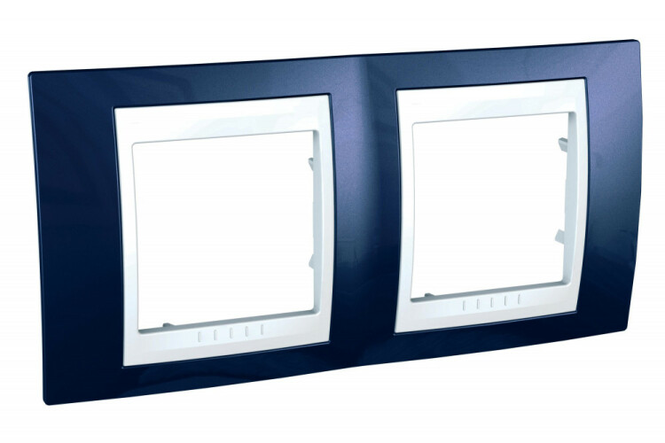 Рамка Schneider Electric UNICA ХАМЕЛЕОН (индиго) двухместная с белой декоративной вставкой.