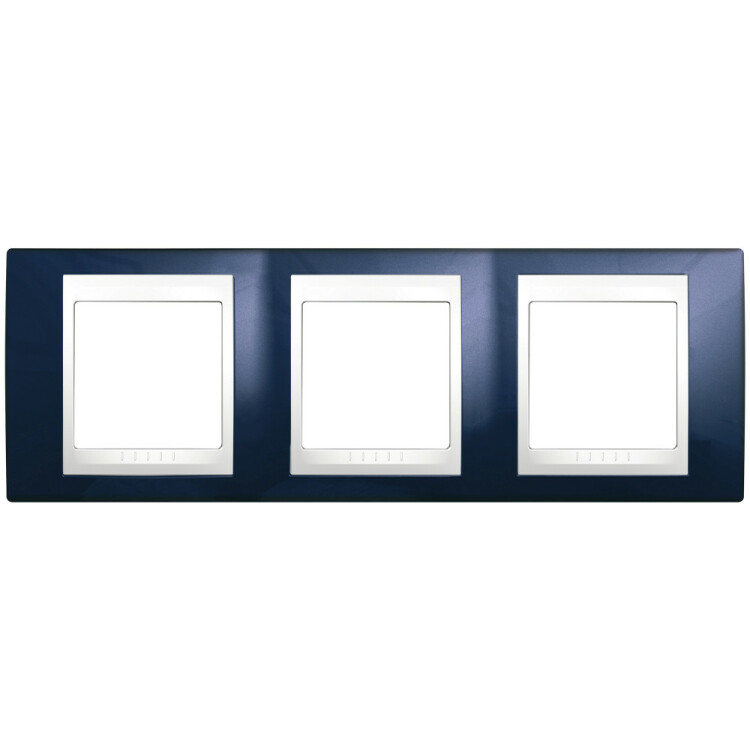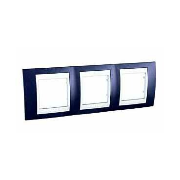 Рамка Schneider Electric UNICA ХАМЕЛЕОН (индиго) трёхместная с белой декоративной вставкой.