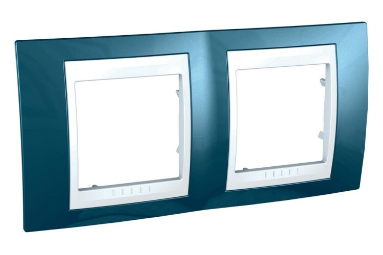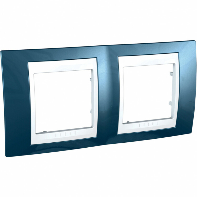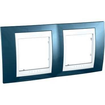 Рамка Schneider Electric UNICA ХАМЕЛЕОН (голубой лёд) двухместная с белой декоративной вставкой.
