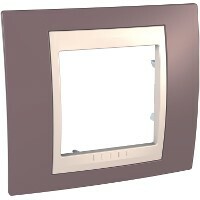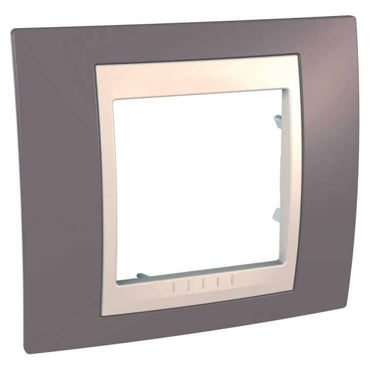 Рамка Schneider Electric UNICA ХАМЕЛЕОН (лиловый) одинарная с бежевой декоративной вставкой.