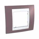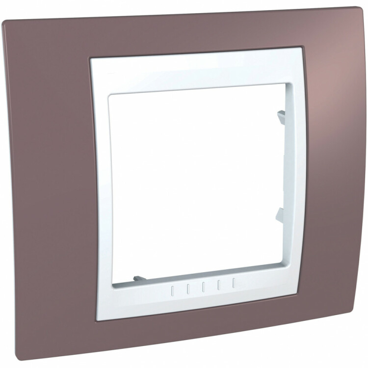 Рамка Schneider Electric UNICA ХАМЕЛЕОН (лиловый) одинарная с белой декоративной вставкой.