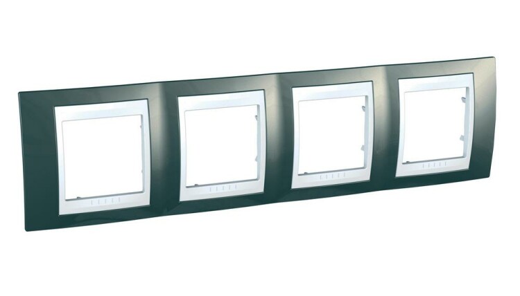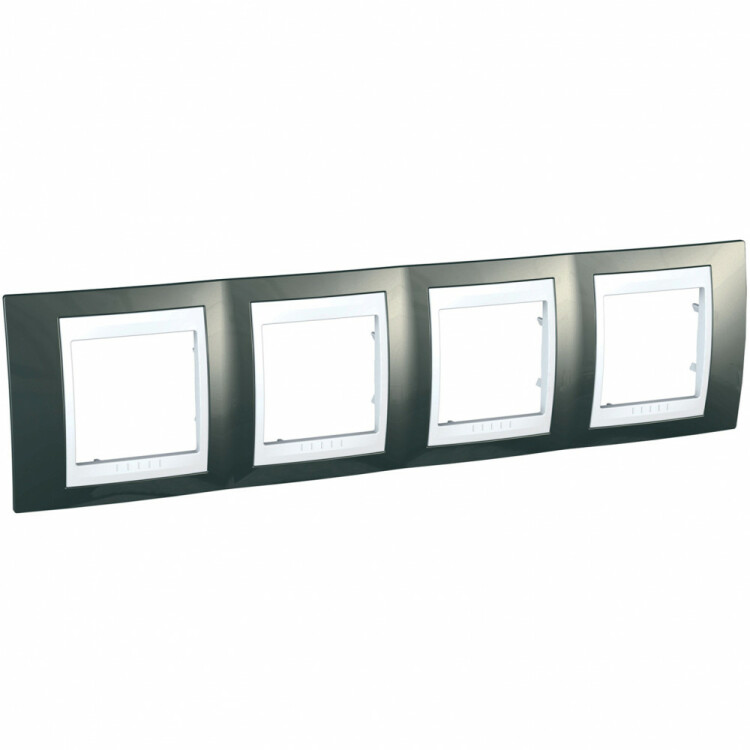 Рамка Schneider Electric UNICA ХАМЕЛЕОН (шампань) четырёхместная с белой декоративной вставкой.