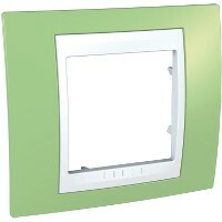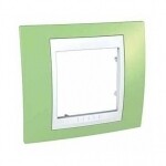 Рамка Schneider Electric UNICA ХАМЕЛЕОН (зелёное яблоко) одинарная с белой декоративной вставкой.