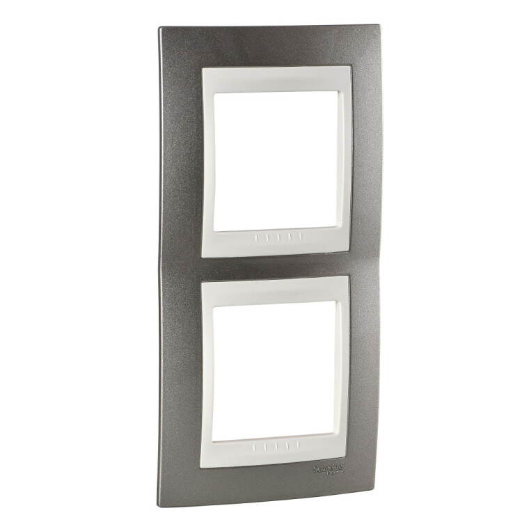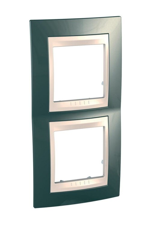 Рамка Schneider Electric UNICA ХАМЕЛЕОН (шампань) двухместная с бежевой декоративной вставкой.