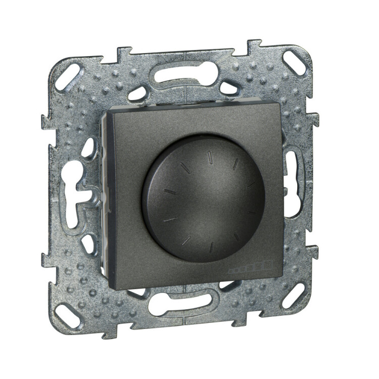 Диммер Schneider Electric UNICA ТОР (графит) повортно-нажимной для ламп накаливания и галогенных на номинальное напряжение до 10 В.