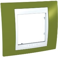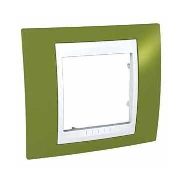 Рамка Schneider Electric UNICA ХАМЕЛЕОН (фисташковый) одинарная с белой декоративной вставкой.