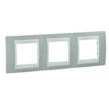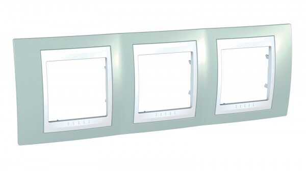 Рамка Schneider Electric UNICA ХАМЕЛЕОН (морская волна) трёхместная с белой декоративной вставкой.