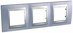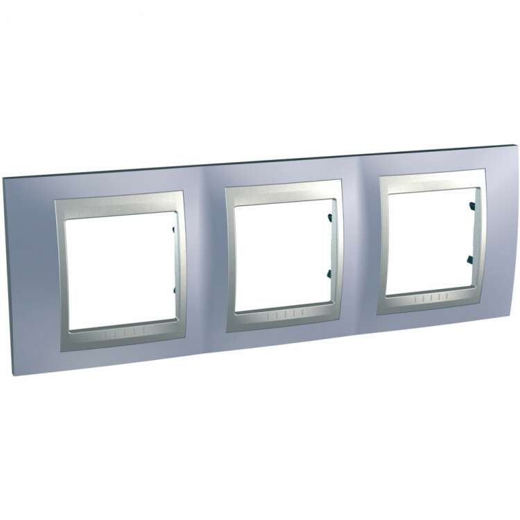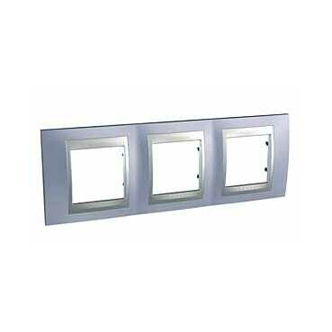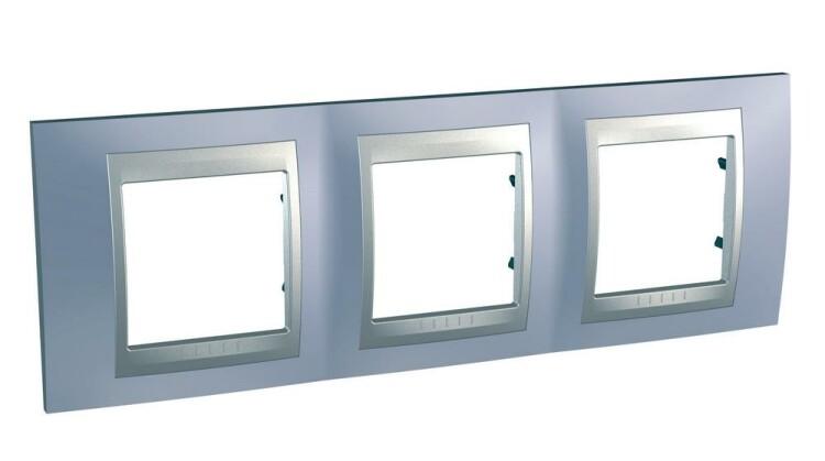 Рамка Schneider Electric UNICA TOP (берилл) трёхместная с алюминиевой декоративной вставкой.