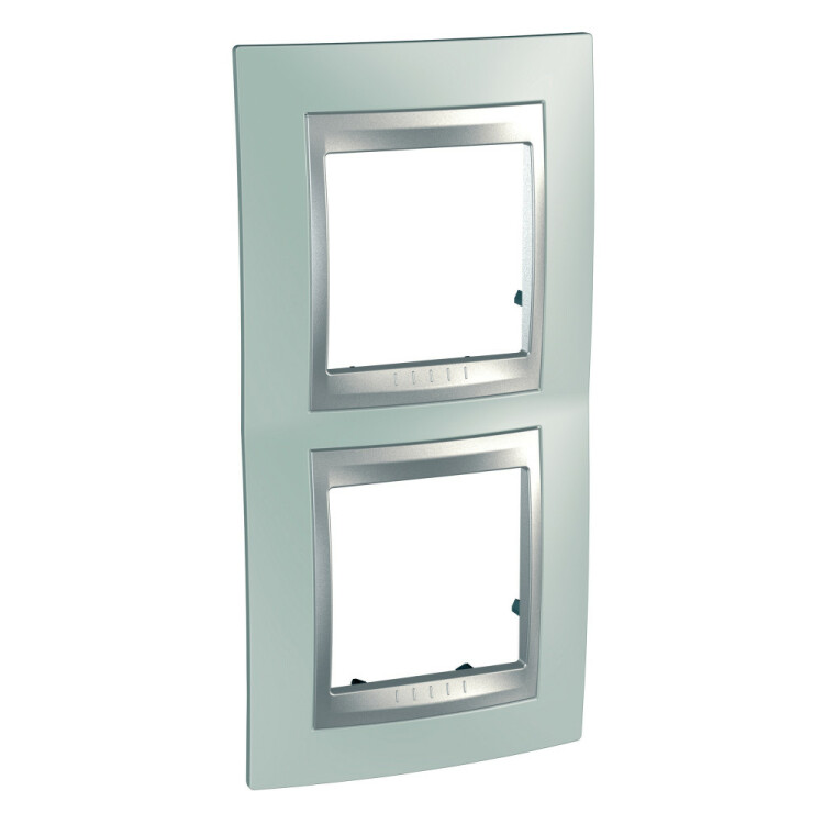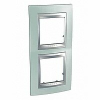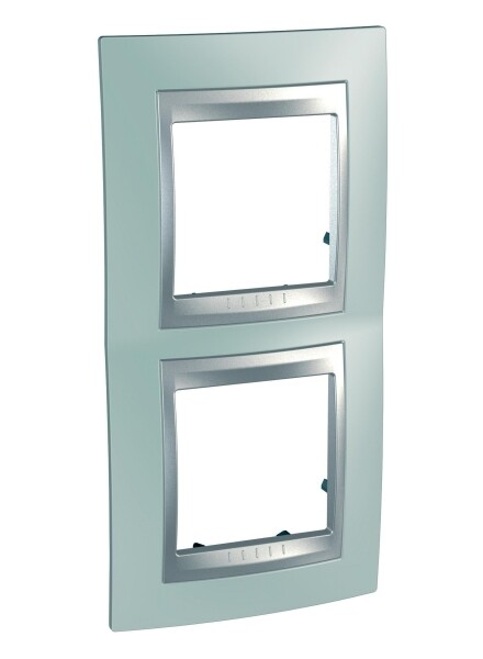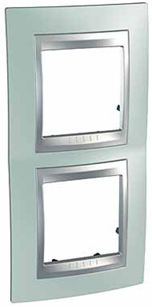 Рамка Schneider Electric UNICA TOP (флюорит) двухместная с алюминиевой декоративной вставкой.