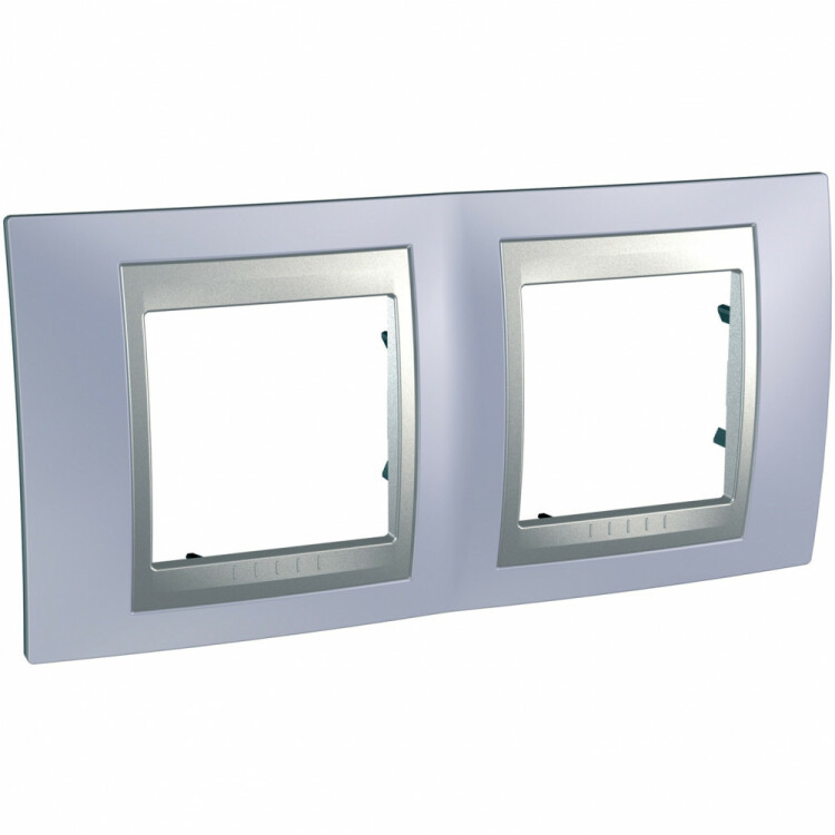 Рамка Schneider Electric UNICA TOP (берилл) двухместная с алюминиевой декоративной вставкой.