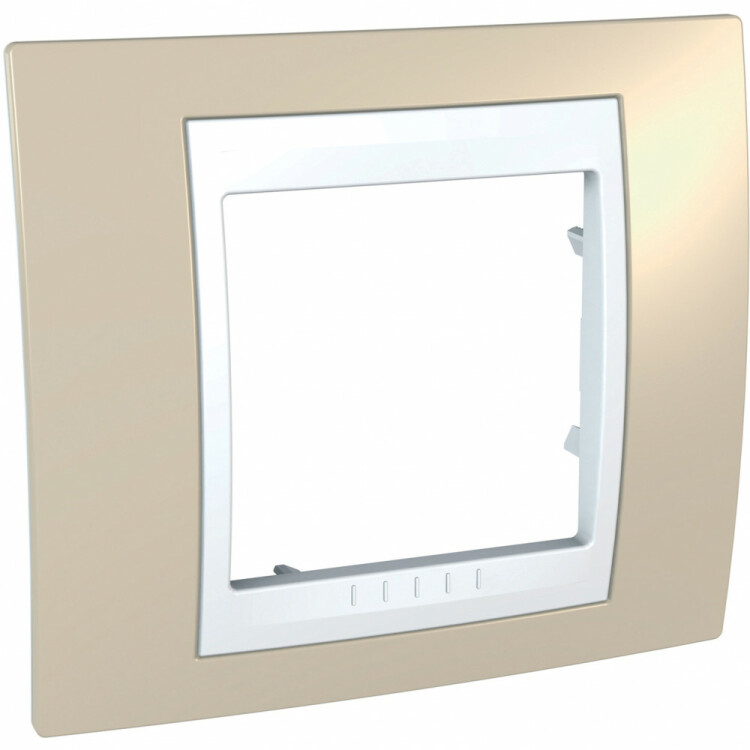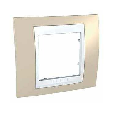 Рамка Schneider Electric UNICA ХАМЕЛЕОН (песчаный) одинарная с белой декоративной вставкой.