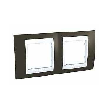 Рамка Schneider Electric UNICA ХАМЕЛЕОН (какао) двухместная с белой декоративной вставкой.