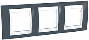 Рамка Schneider Electric UNICA ХАМЕЛЕОН (серо-зелёный) трёхместная с белой декоративной вставкой.