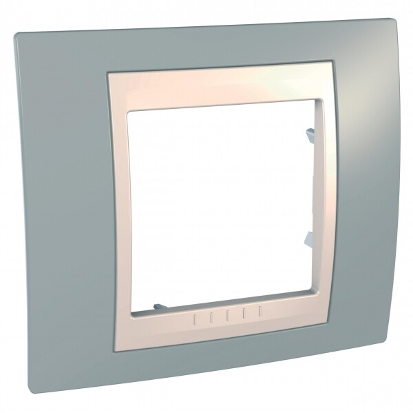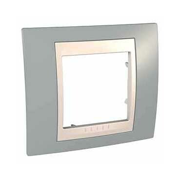 Рамка Schneider Electric UNICA ХАМЕЛЕОН (серый) одинарная с бежевой декоративной вставкой.