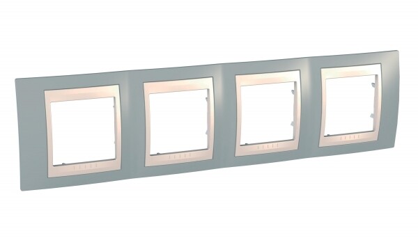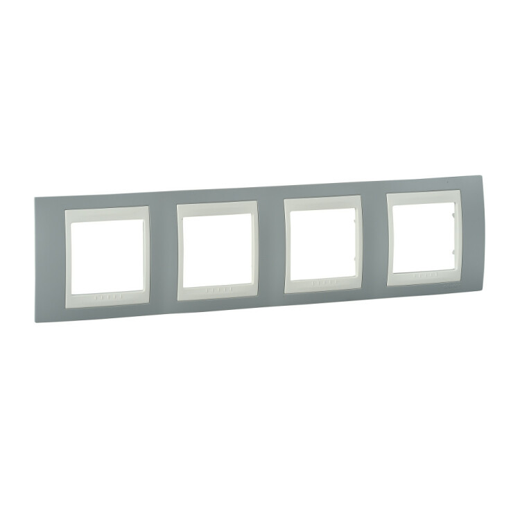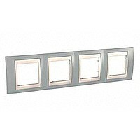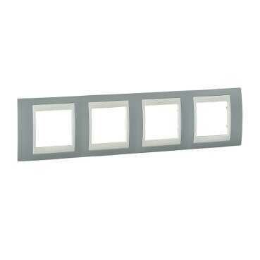 Рамка Schneider Electric UNICA ХАМЕЛЕОН (серый) четырёхместная с бежевой декоративной вставкой.