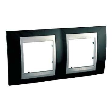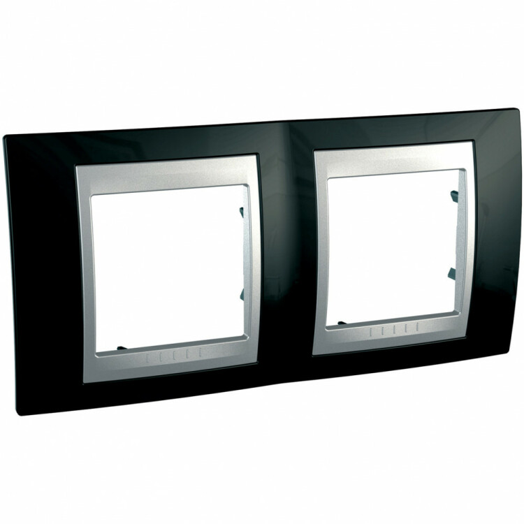 Рамка Schneider Electric UNICA TOP (родий) двухместная с алюминиевой декоративной вставкой.