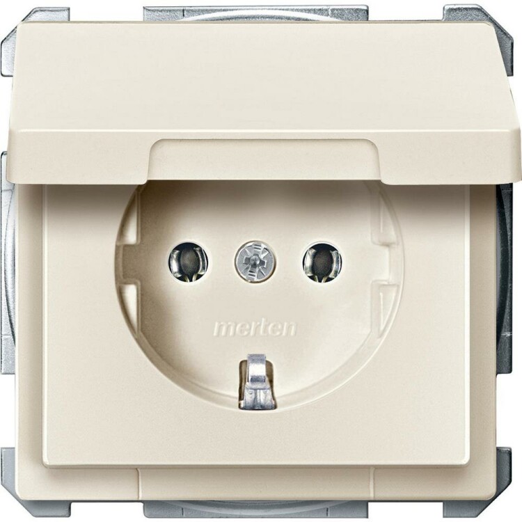 Розетка Shneider Electric Merten SD SCHUKO (алюминий) с з/k без шторок с крышкой подходит для сетей 250 В и тока 16 А.
