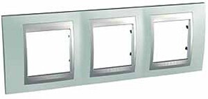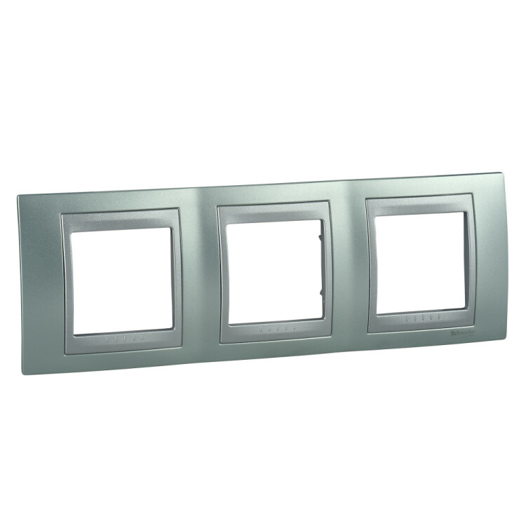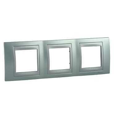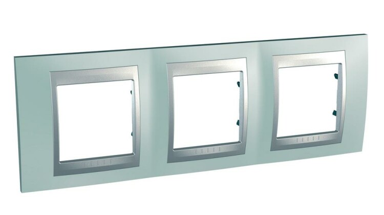 Рамка Schneider Electric UNICA TOP (флюорит) трёхместная с алюминиевой декоративной вставкой.