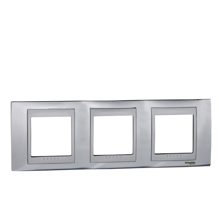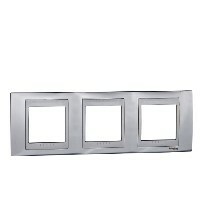 Рамка Schneider Electric UNICA TOP (хром глянцевый) трёхместная с алюминиевой декоративной вставкой.