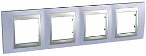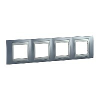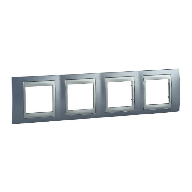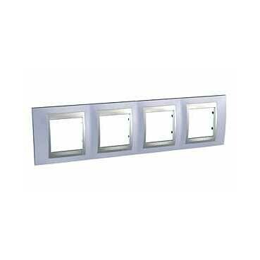 Рамка Schneider Electric UNICA TOP (берилл) четырёхместная с алюминиевой декоративной вставкой.