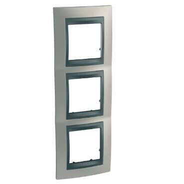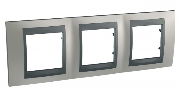 Рамка Schneider Electric UNICA TOP (никель) трёхместная с графитовой декоративной вставкой.