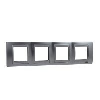 Рамка Schneider Electric UNICA TOP (хром матовый) четырёхместная с алюминиевой декоративной вставкой.
