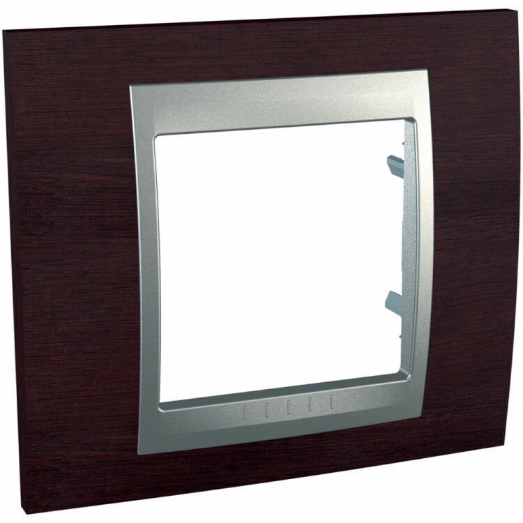 Рамка Schneider Electric UNICA TOP (венге) одинарная с алюминиевой декоративной вставкой.