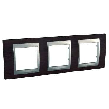 Рамка Schneider Electric UNICA TOP (венге) трёхместная с алюминиевой декоративной вставкой.