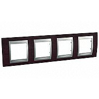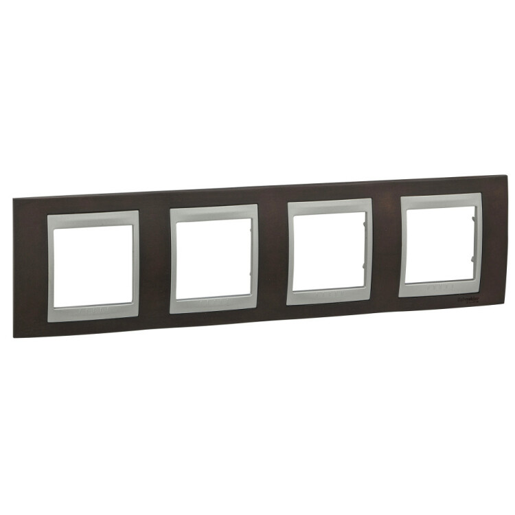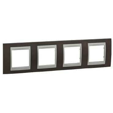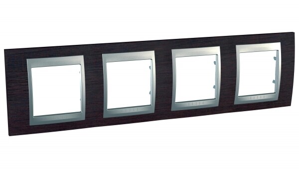Рамка Schneider Electric UNICA TOP (венге) четырёхместная с алюминиевой декоративной вставкой.