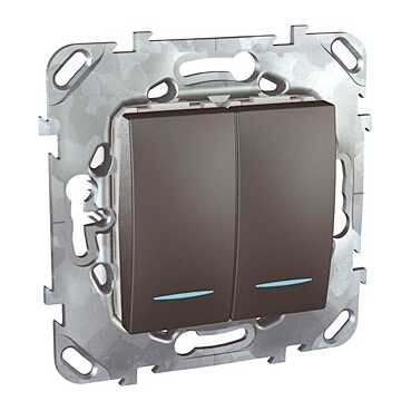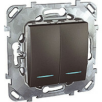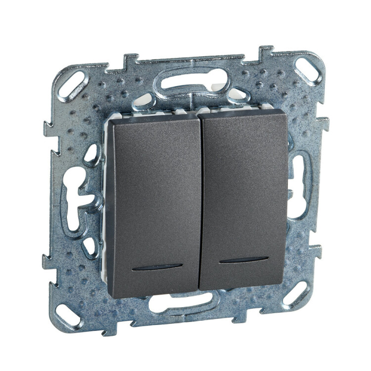 Выключатель двухклавишный Schneider Electric UNICA TOP (графит) с подсветкой предназначен для сетей до 250 В на ток до 10 А.
