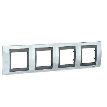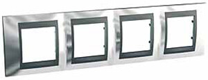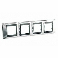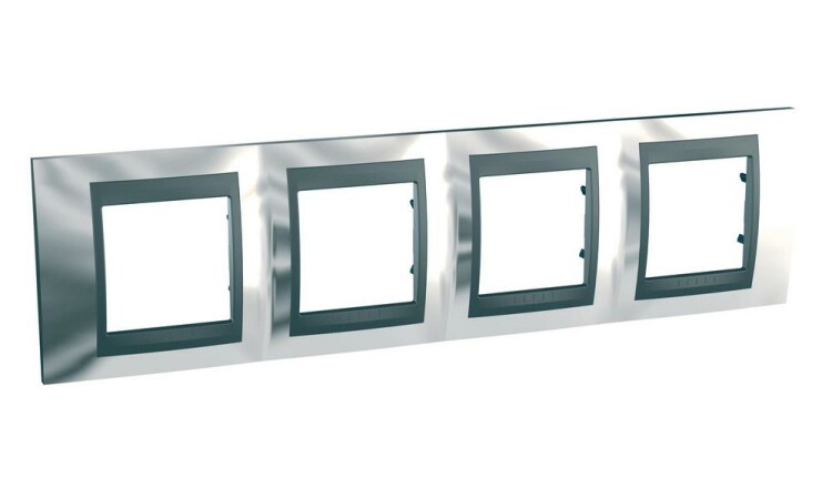 Рамка Schneider Electric UNICA TOP (хром глянцевый) четырёхместная с графитовой декоративной вставкой.