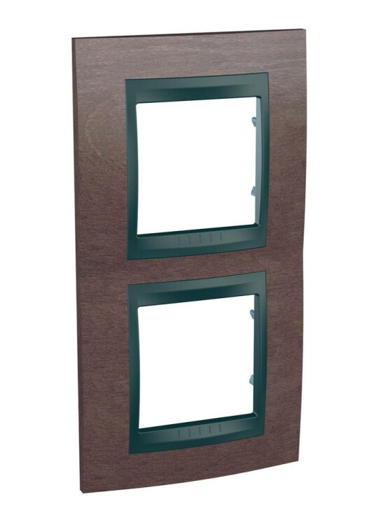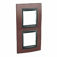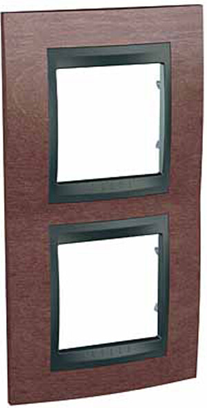 Рамка Schneider Electric UNICA TOP (табачное дерево) двухместная с графитовой декоративной вставкой.
