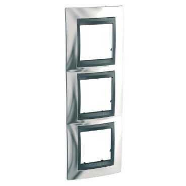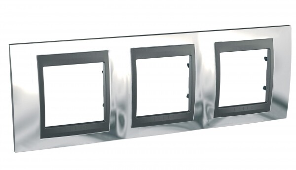 Рамка Schneider Electric UNICA TOP (хром глянцевый) трёхместная с графитовой декоративной вставкой.