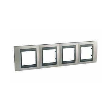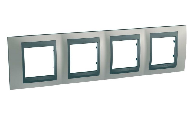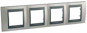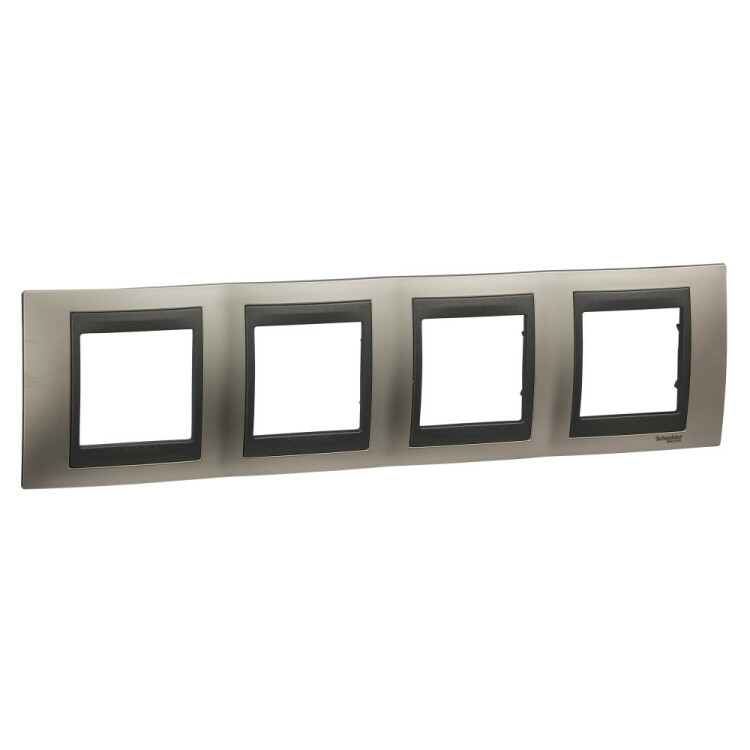 Рамка Schneider Electric UNICA TOP (никель) четырёхместная с графитовой декоративной вставкой.