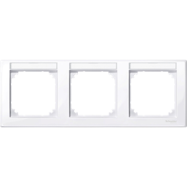 Рамка с полем для надписи 3 поста. наименование: M-Smart - тип устройства или его аксессуаров: рамка - код цвета: RAL 9016. Преимущества: Безграничные возможности Merten System M. Основой изделий являются высококачественные механизмы скрытого монтажа. Они отличаются высокой гибкостью использования и разнообразием выполняемых функций: это электрические розетки, клавишные и кнопочные выключатели, устройства управления рольставнями и регуляторы температуры, а также телефонные, ТВ/аудио и компьютерные розетки, датчики движения и присутствия, термостаты, светорегуляторы и реле времени, компоненты радиосистемы и системы автоматизации KNX. Merten System M удовлетворяет всем требованиям и успешно решает любые задачи.... применения: Изделия Merten System M подходят для жилых и нежилых помещений. Их устанавливают в школах, офисах, больницах или отелях., Инновационные функции для классических электрических установок, Выполнение функций интеллектуального интерфейса для работы с KNX, Обеспечение комфорта, безопасности и эффективности использования электроэнергии, Возможность простой и гибкой модернизации с System M и системой RF..